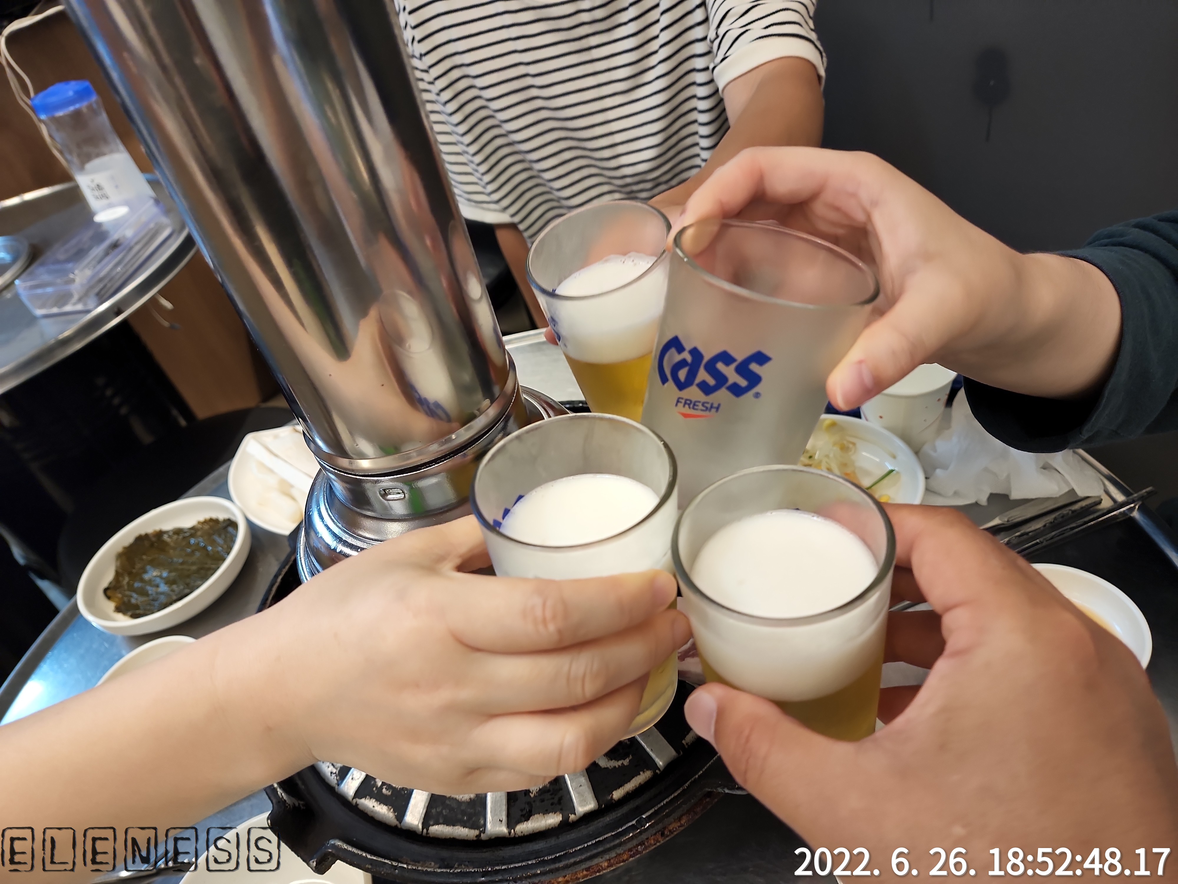 첫 잔은 소맥으로 깔끔하게 원샷~ 가족과 먹는 술은 언제나 즐겁습니다.