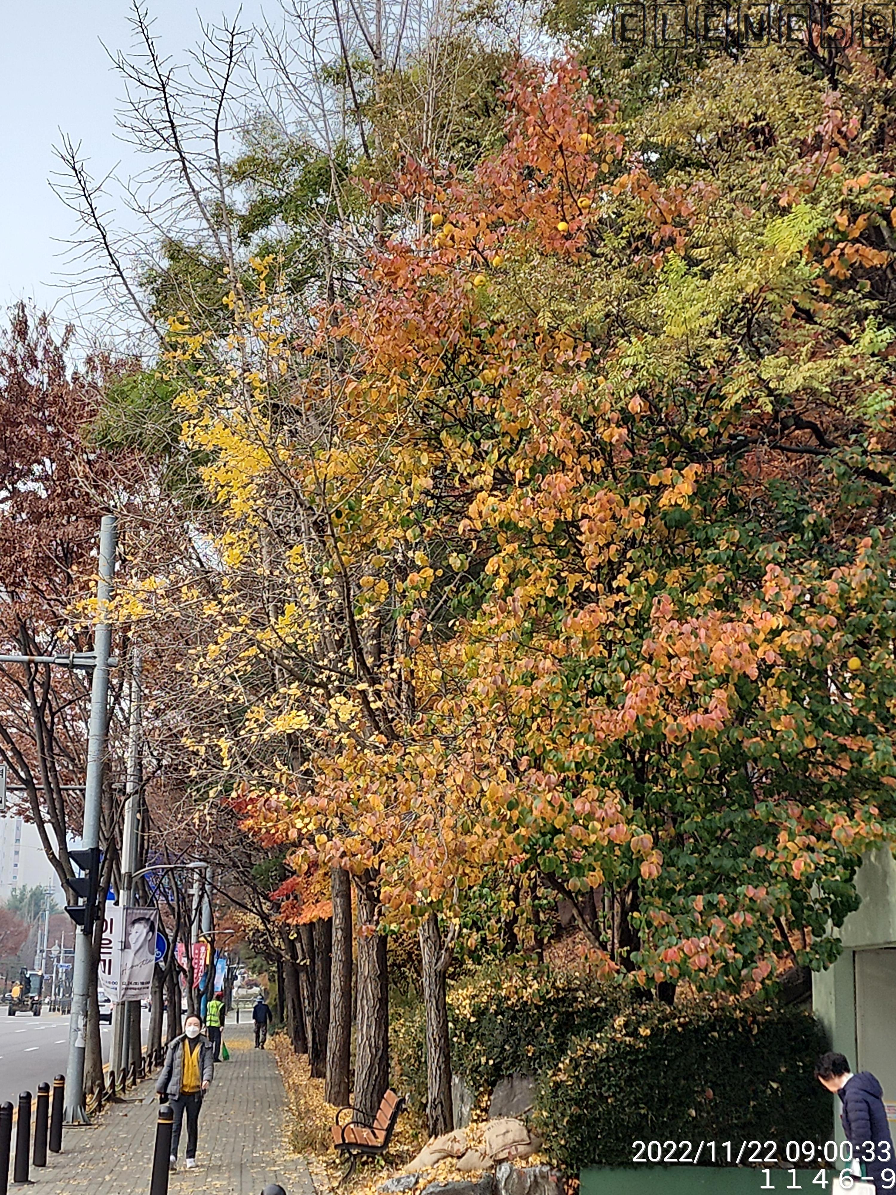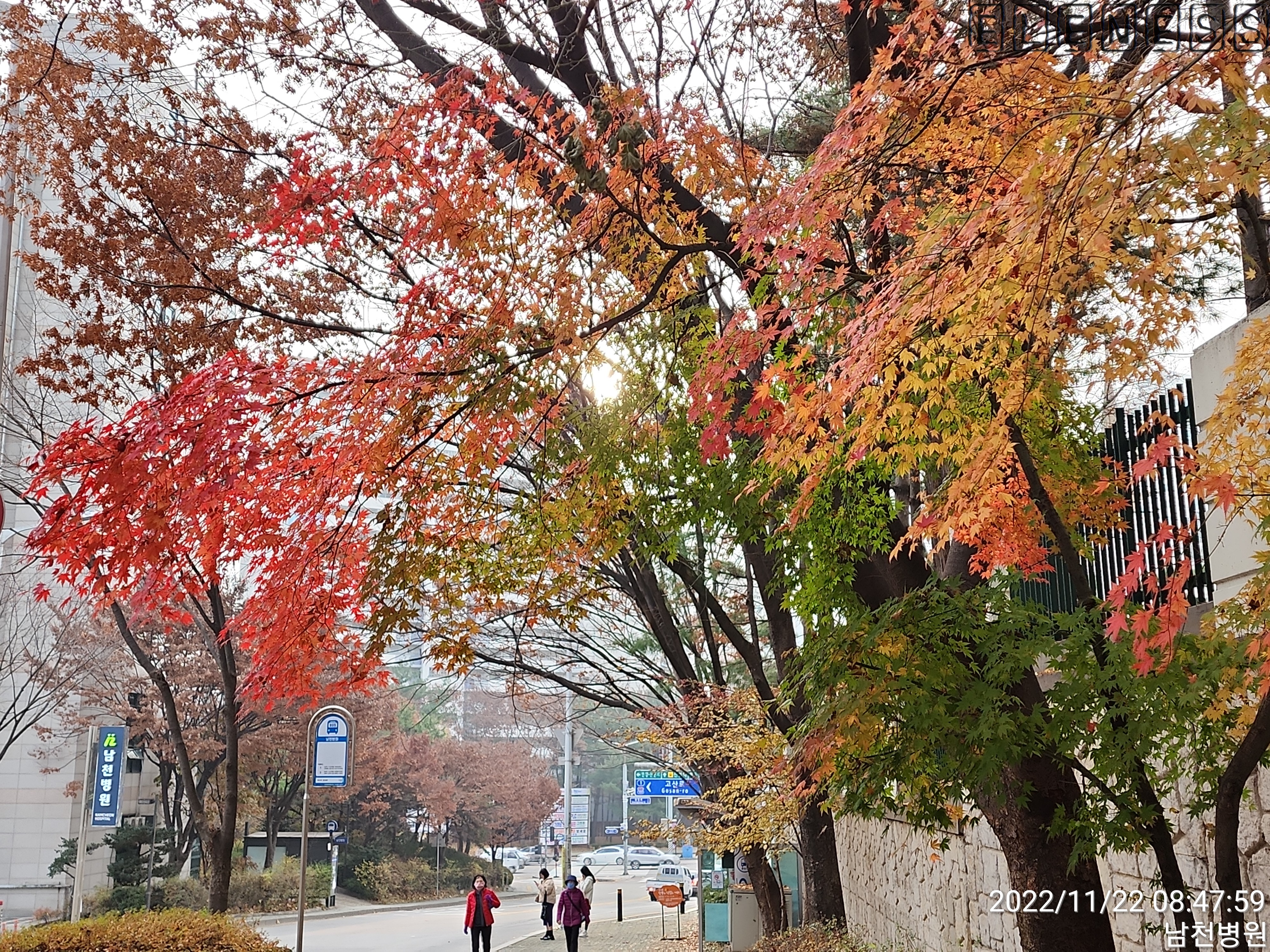 가을이 깊어져 많은 나무는 이미 잎을 다 떨구고 솜털싹을 남기고 잠잘 준비중입니다.