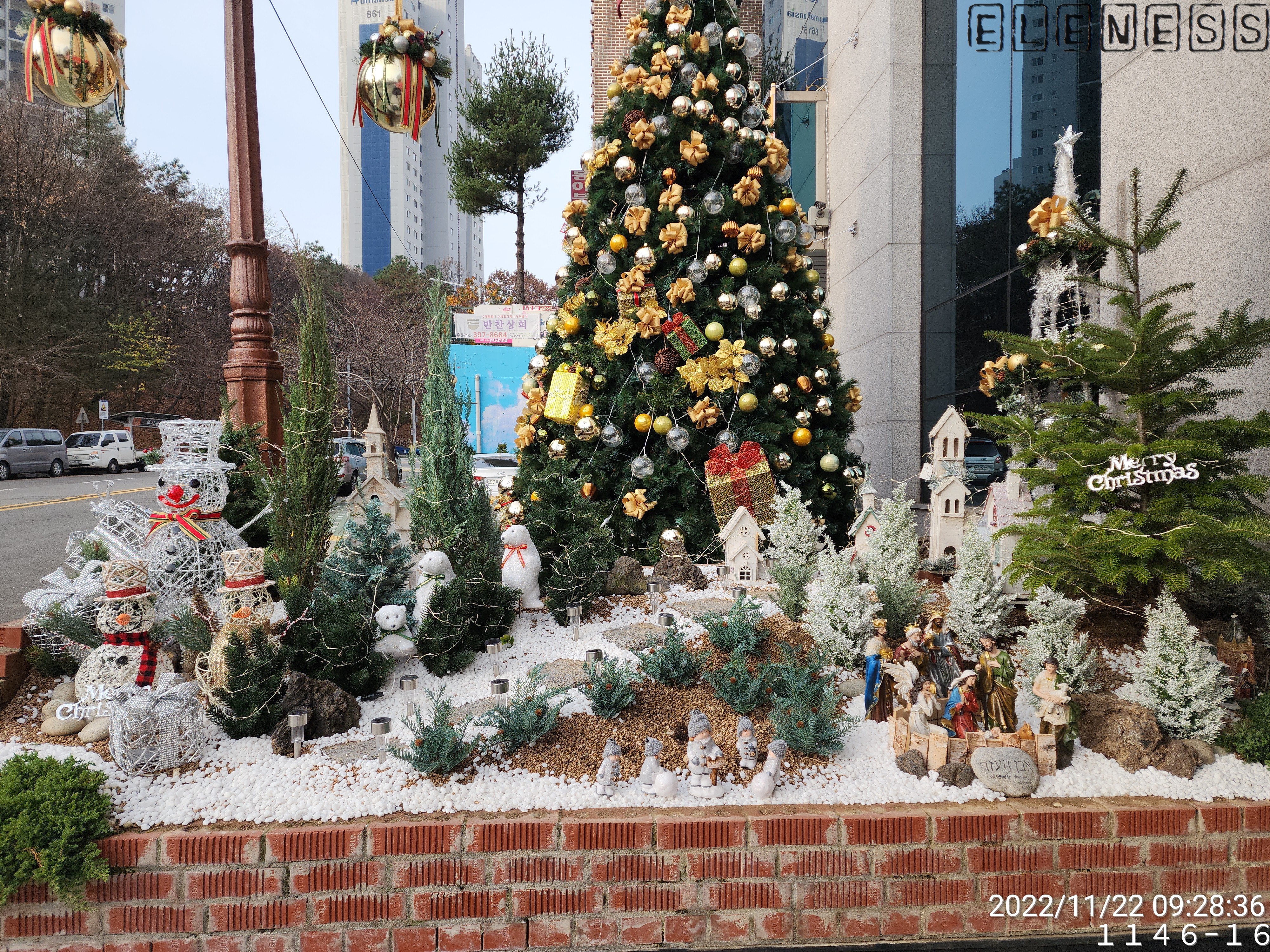 시민 교회는 화단을 벌써 이쁜 크리스마스 분위기로 꾸몄습니다..