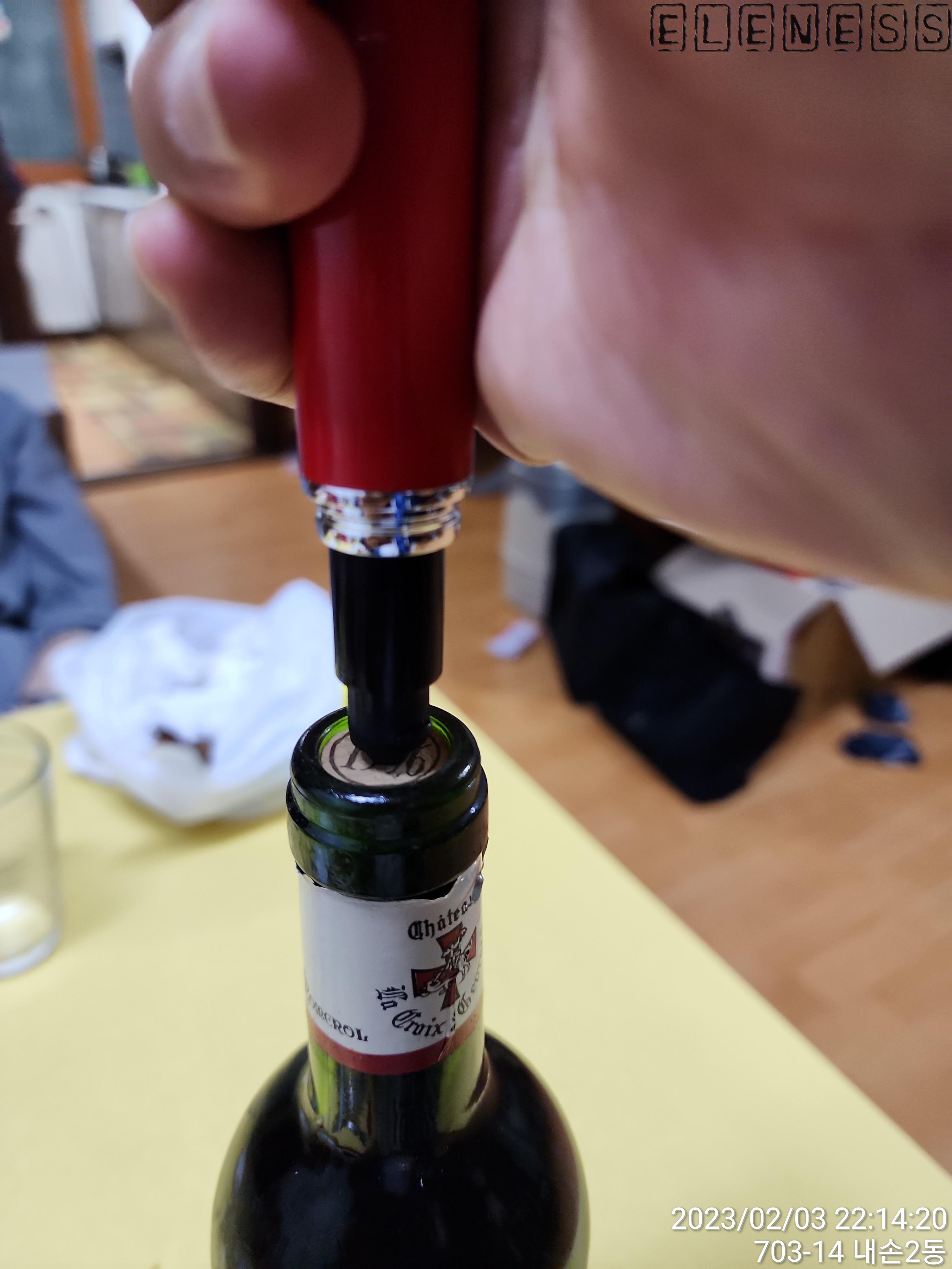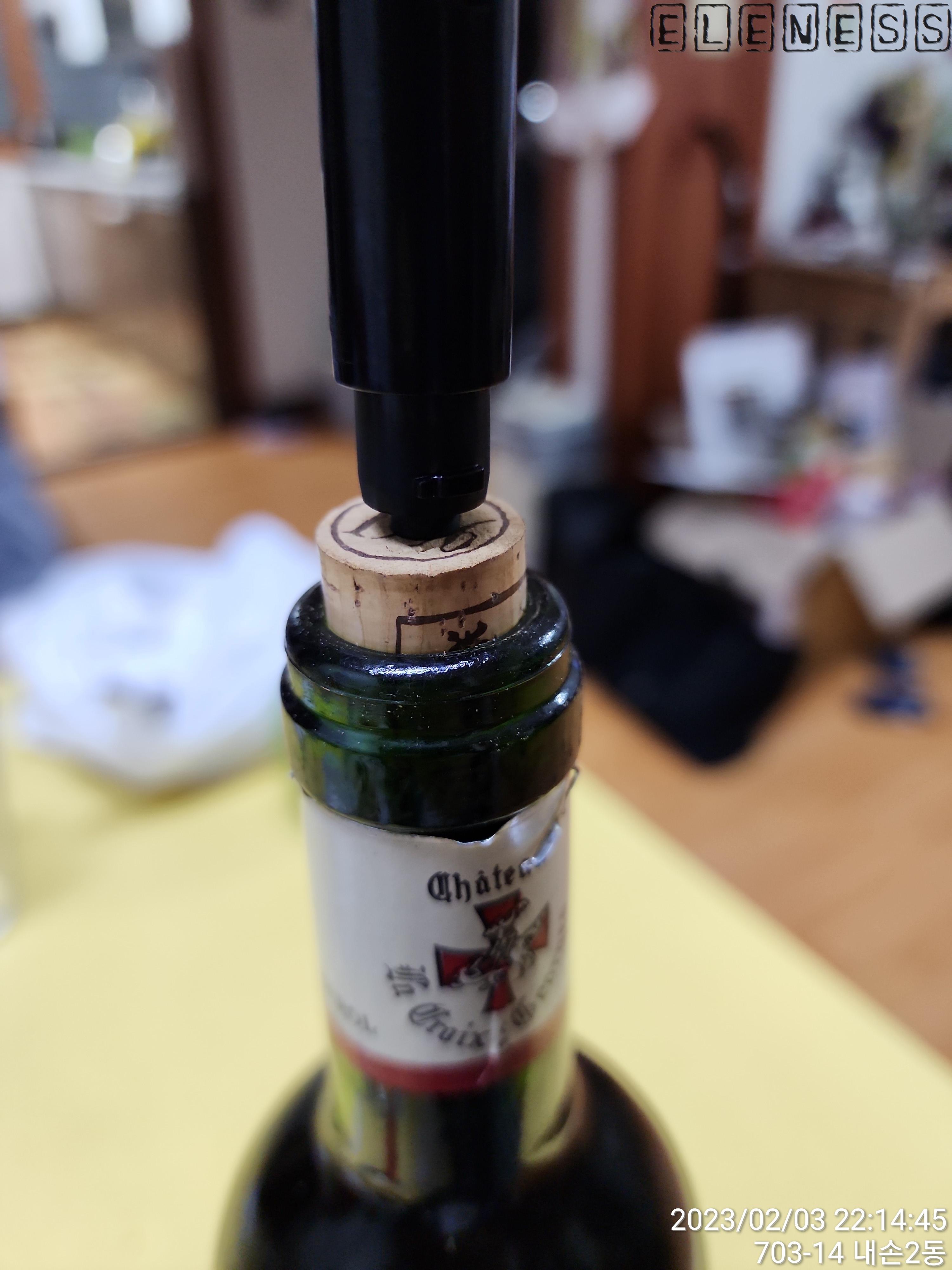 바늘을 넣어 찌르고 펌핑하면 코르크 부서짐 없이 코르크 마개가 뿅~ 터져 나온다.