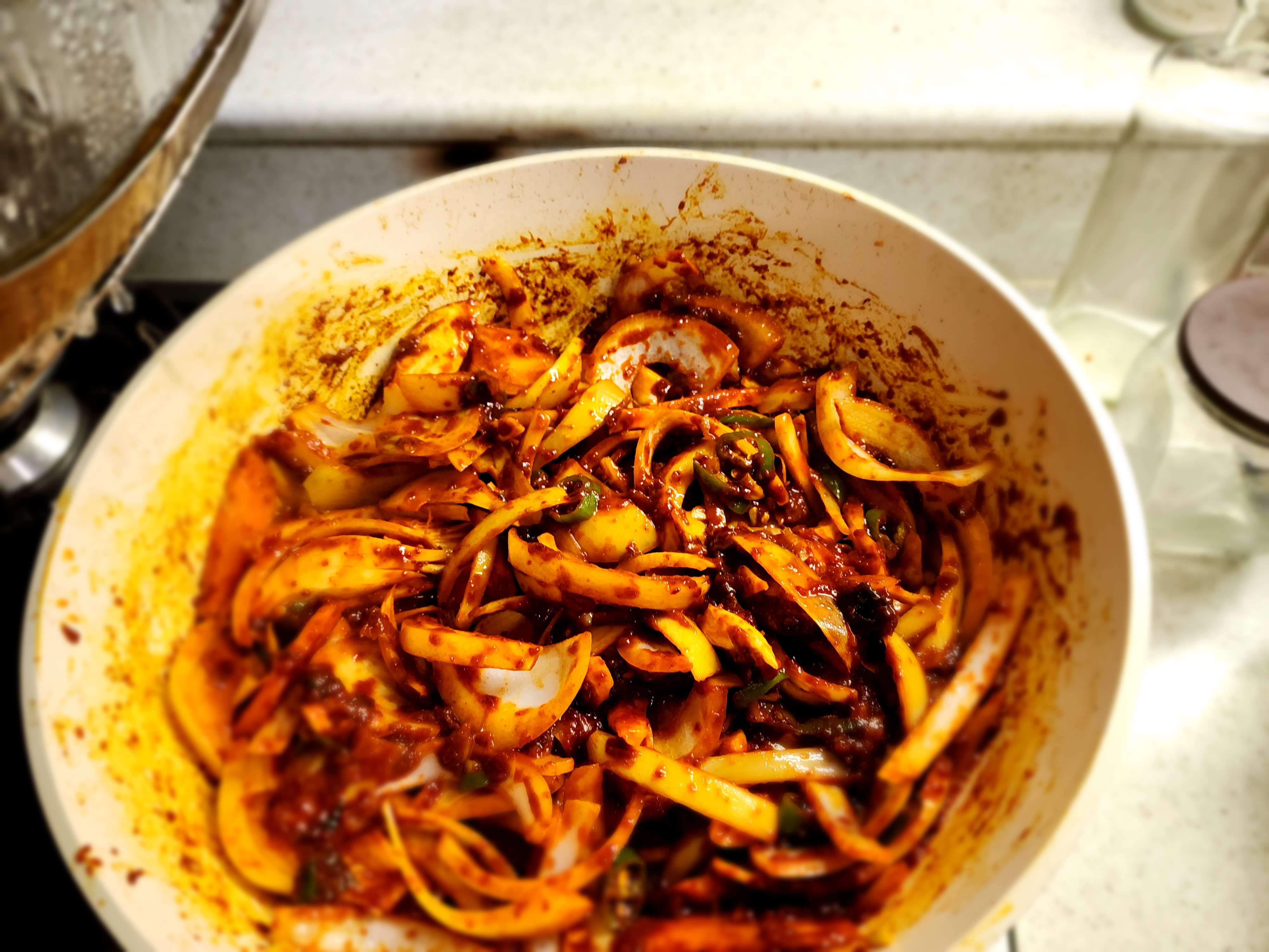 팁을 주자면 볶을 땐 시판 파기름으로 고추기름을 내도 좋을듯하고 끝날 때는 불맛용 화유를 써도 사 온듯한 느낌을 내기 좋을 것 같다..
