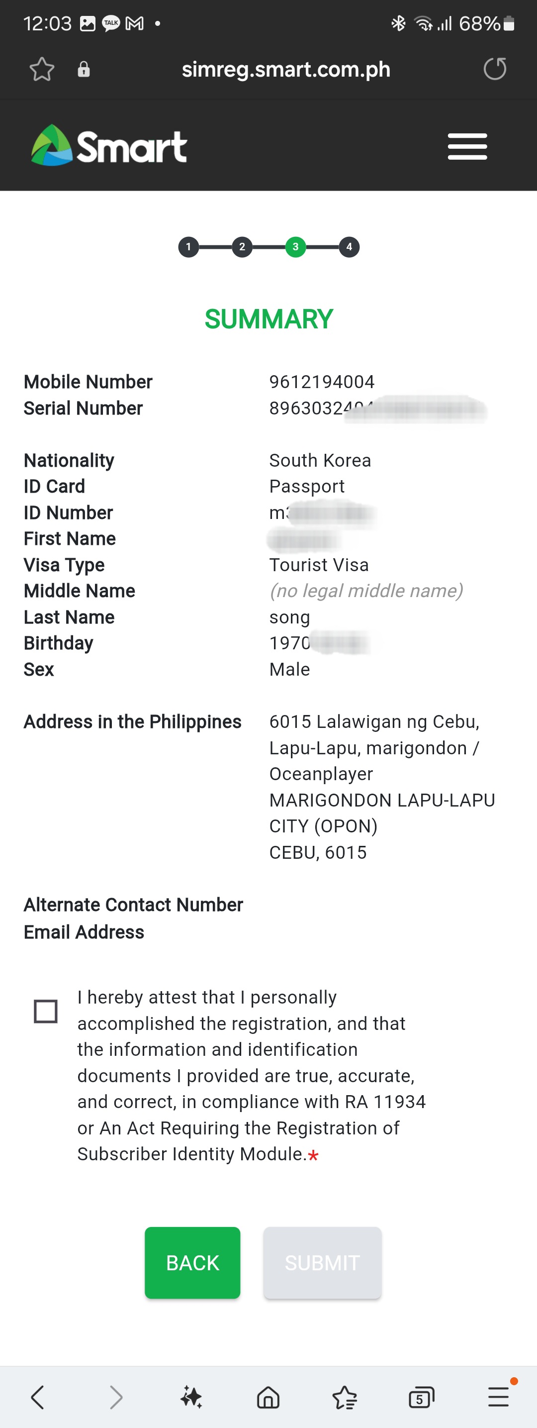 등록 방법은 화면에 따라 이름과 성 여권 번호 입력할 때는 여권 이미지와 돌아올 항공표 이미지를 요구합니다 그 외 주소는 적당히 선택해서 넣으시면 됩니다