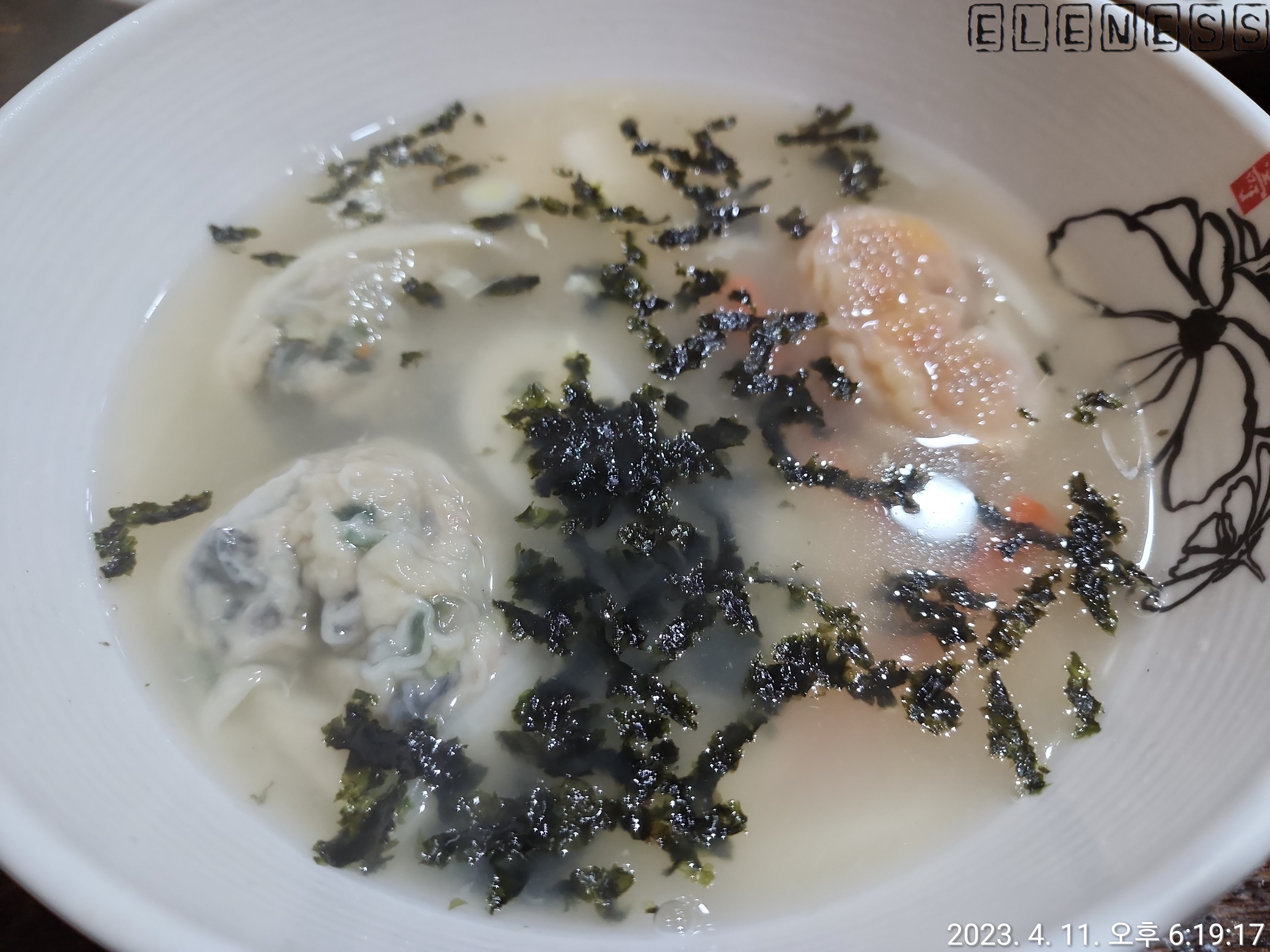 생각보다 양이 많아요.고기만두2 김치만두1 그리고 떡국떡.. 드실때 참기름을 조금 뿌려 드시길 권합니다.