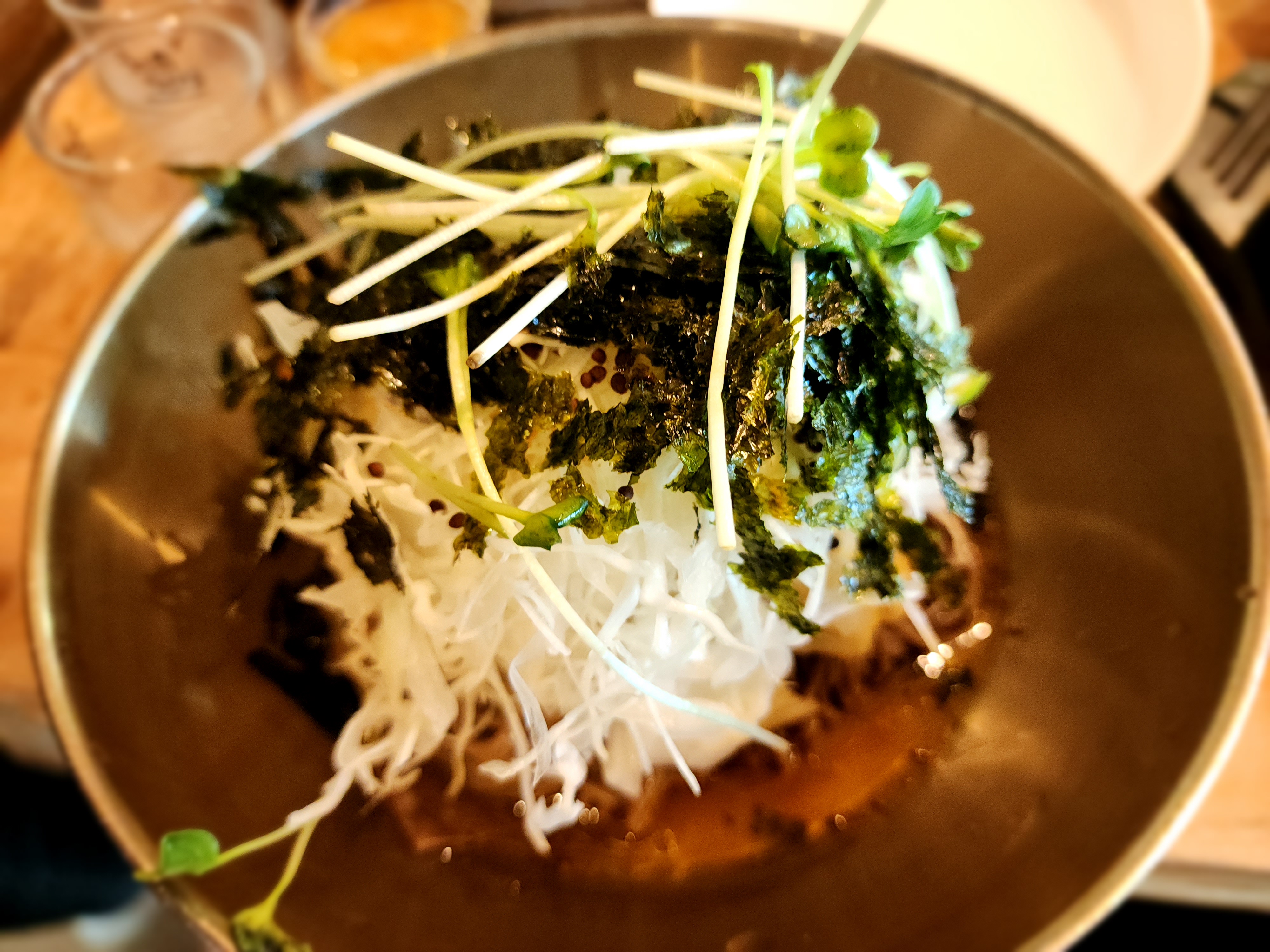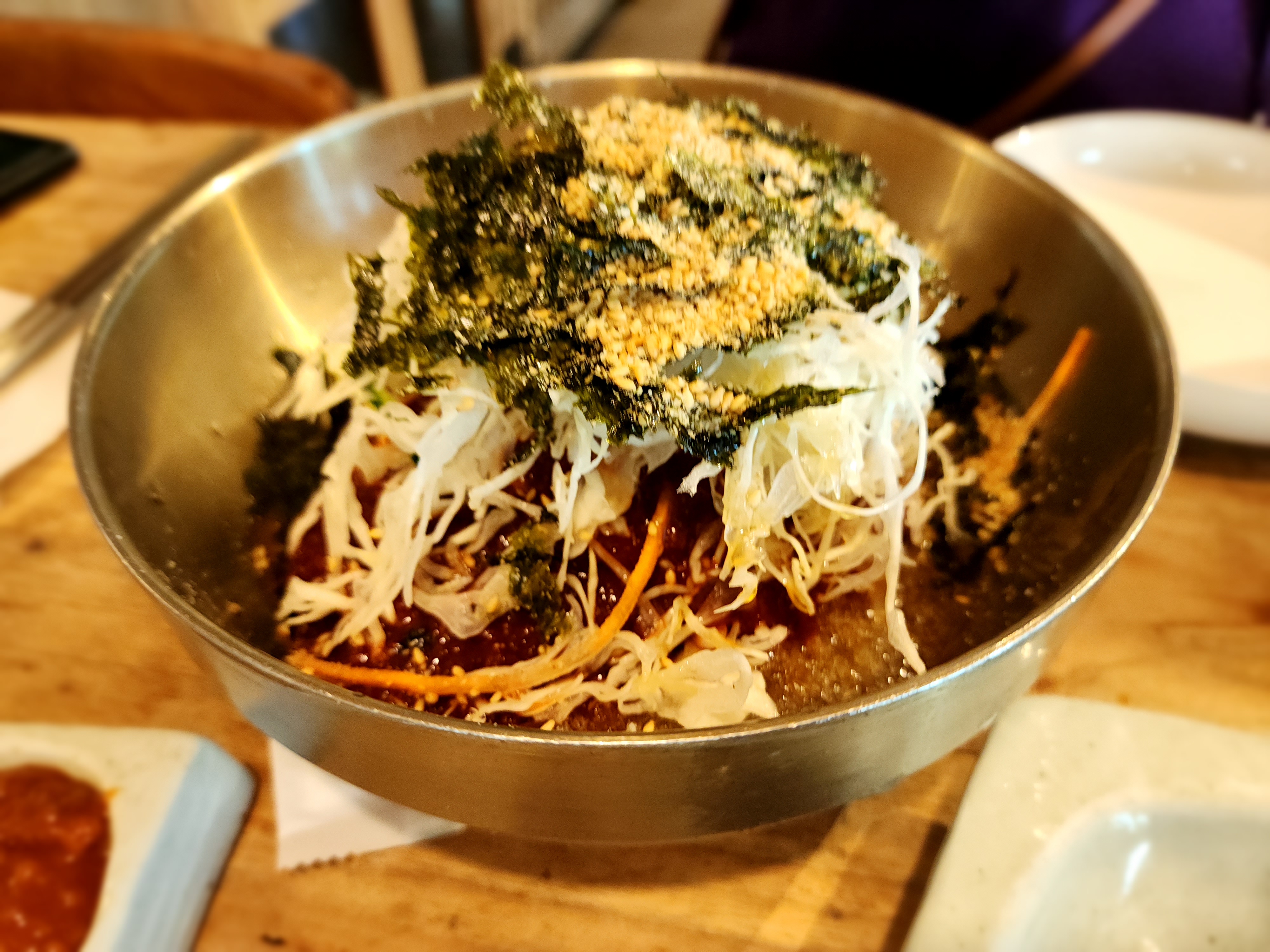 다만 육개장 칼국수는 독특하게 면이 따로나오는데... 면보다는 국물이 조금 아쉬웠다.. 매콤하고 중후한 맛을 기대했으나.. 뭉근한 곰탕 같은 느낌이다..
