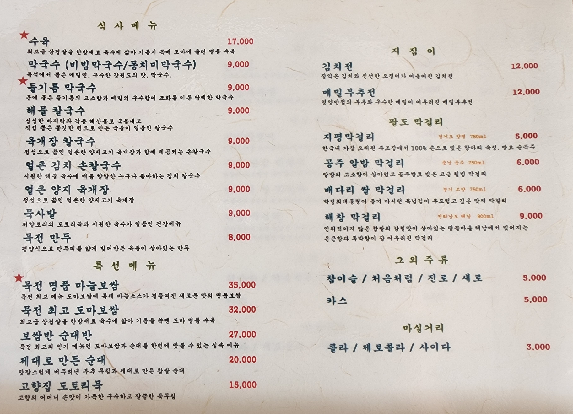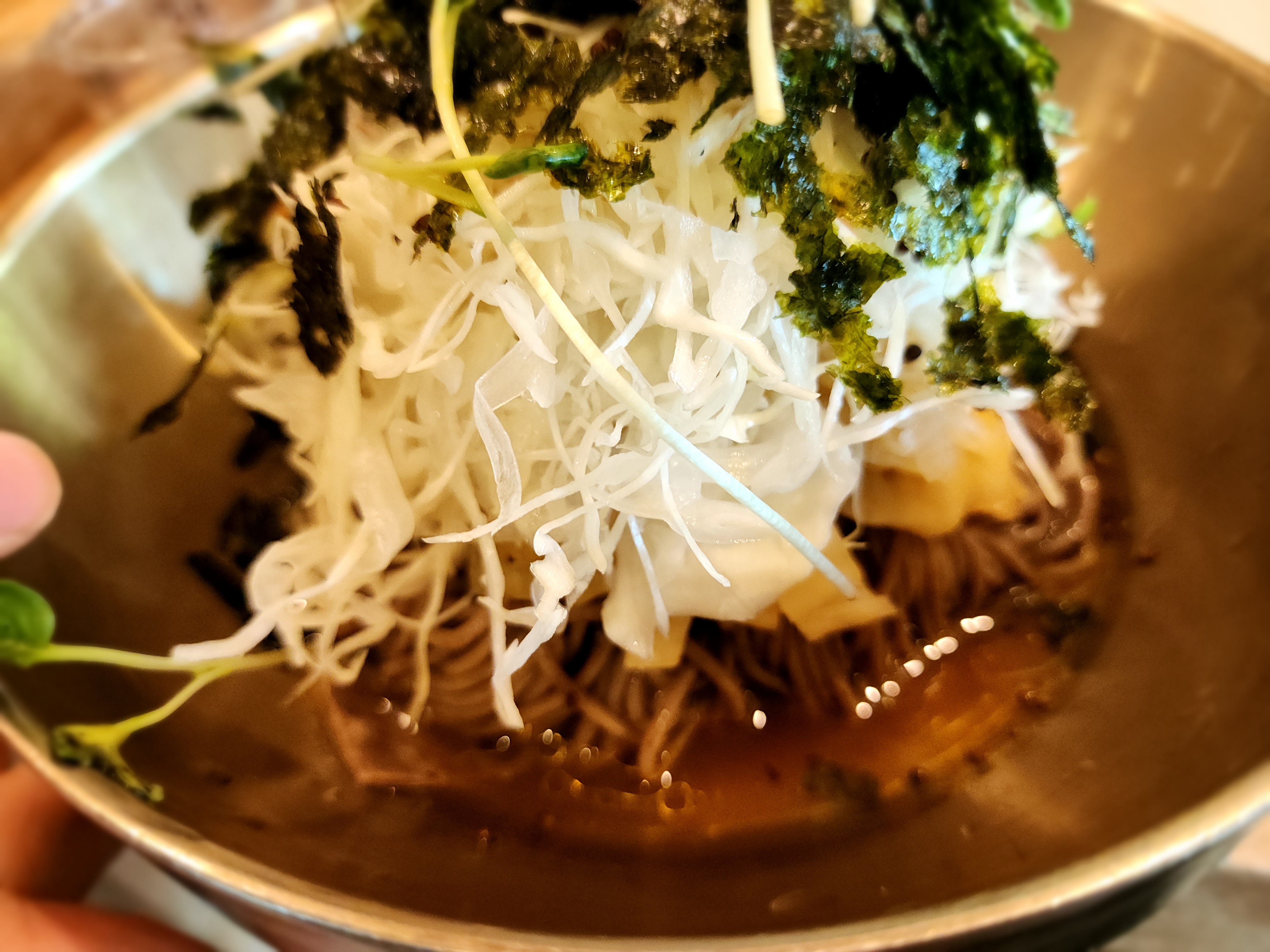마늘 수육, 육개장칼국수, 들기름 막국수, 비빔 막국수, 도토리묵, 도토리 전, 만두, 수육추가까지.. 넉넉하게 맛있게 먹고 왔다.